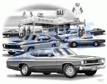 This print is of 1970-73 Dusters with the feature car a 1970.