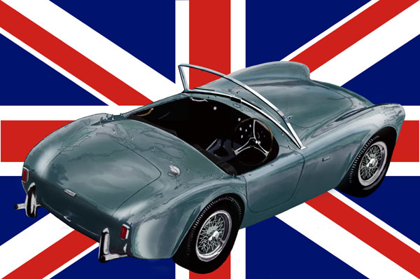 Print is of a British Shelby Cobra 289 finished in blue. Notice right side steering.