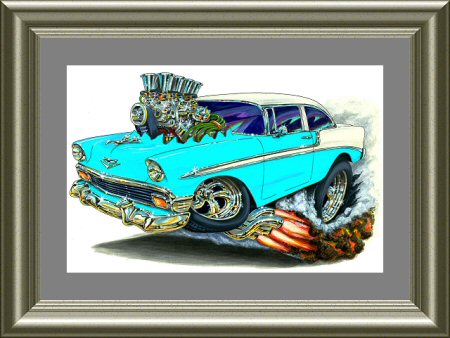 This all hand drawn print is of a 1956 Chevy. Incredibly detailed and signed by the