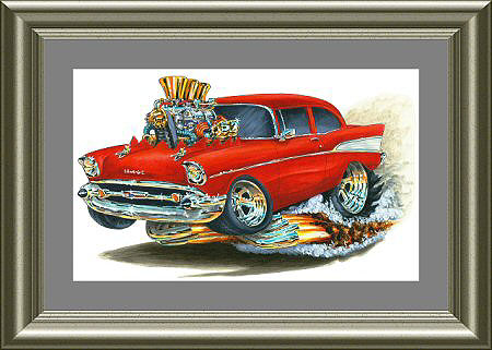 the artist. Valve cover reads "57". Great for any automobilia collection.