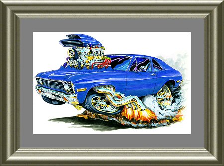 This all hand drawn print is of the 1971-72 Chevrolet Nova.