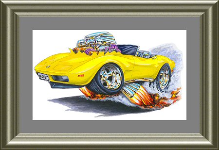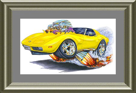 This all hand drawn print is of the 1973-76 Chevy Corvette. Incredibly