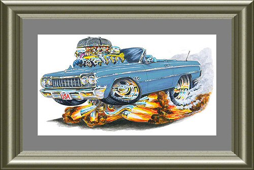 This all hand drawn print is of the 1964 Chevy Impala. Incredibly