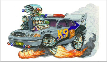 This all hand drawn print is of a Ford Crown Victoria K-9 Police Car. Incredibly