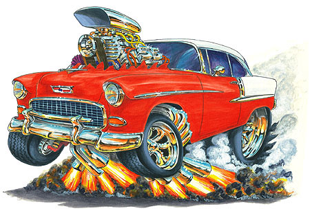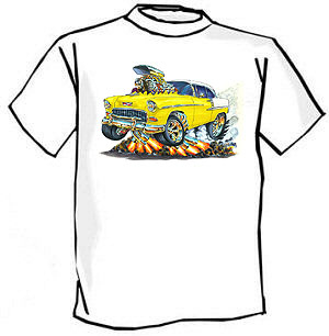 of the 1955 Chevy Bel Air on the shirts are as detailed as the art prints. These